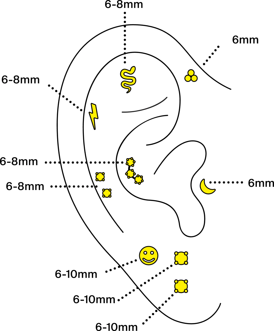 *REMEMBER: Everyone’s ear is unique and these suggestions may not be your best fit! We suggest consulting a professional piercer if you’re unsure which length is best for you.
